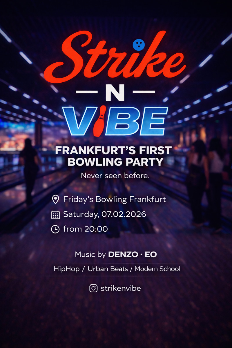 - Strike, Sound & Spotlight! Erlebe Disco Bowling wie nie zuvor – mit mitreißenden Beats von unseren Live DJ´s, spektakulären Lichteffekten und jeder Menge Party-Atmosphäre. Ob mit Freunden, Kollegen oder zum Feiern des Wochenendes – hier wird Bowling zur ultimativen Club-Experience. Frankfurt´s neue Party Location – sei dabei und sichere dir deine Bahn!