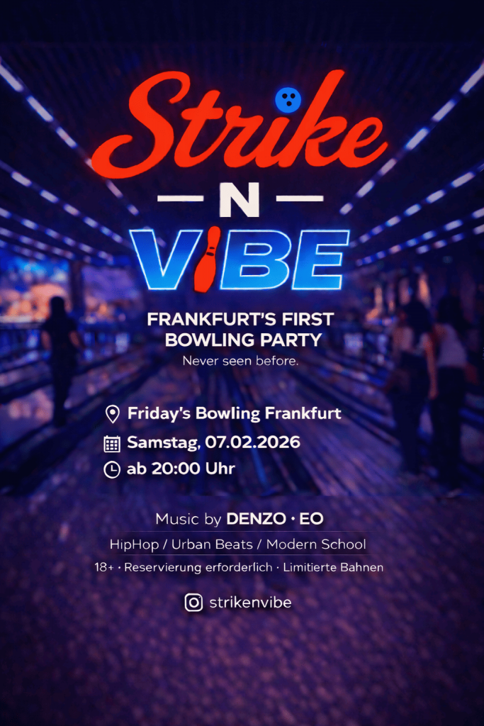 Am Samstag, den 07.02.2026, bringen wir ein Event nach Frankfurt, das es so noch nie gab: die erste Bowling-Hip-Hop-Party der Stadt.